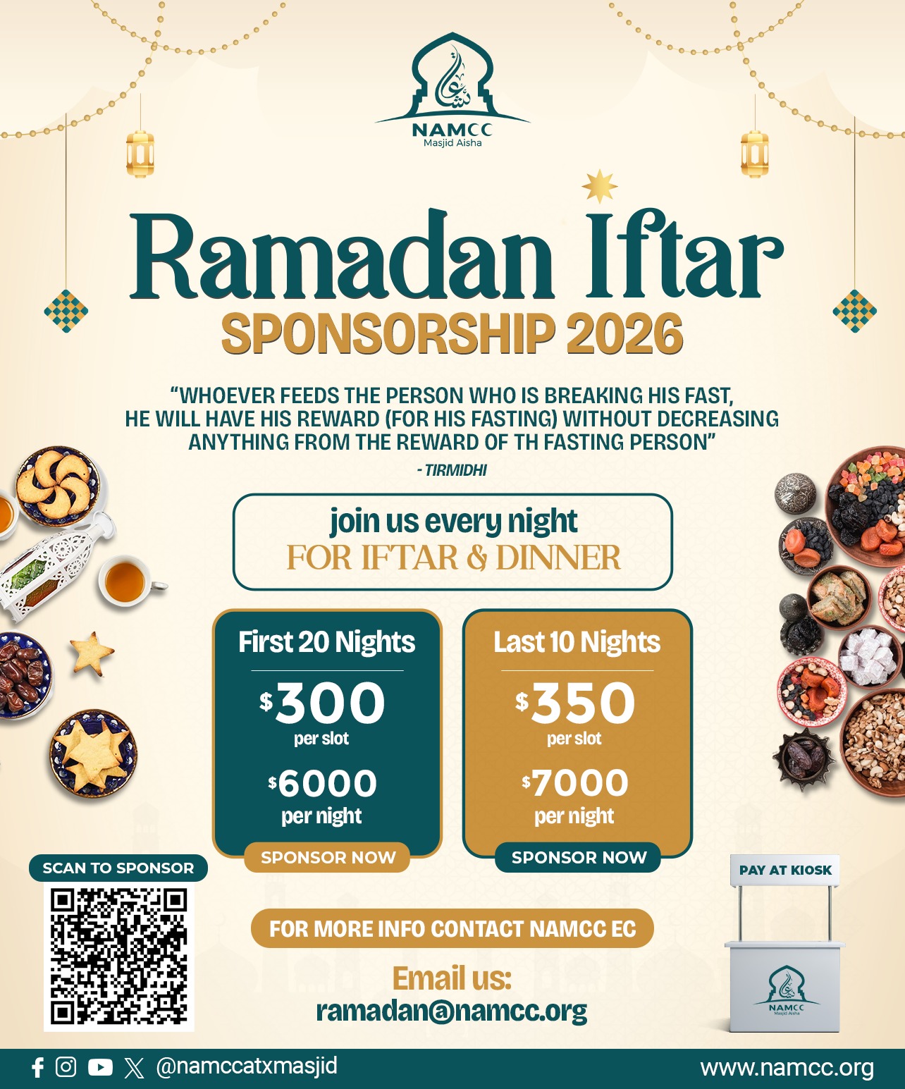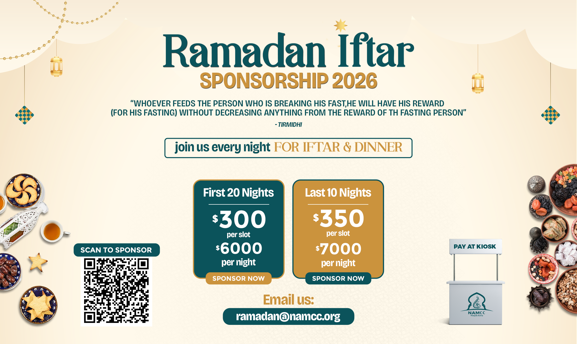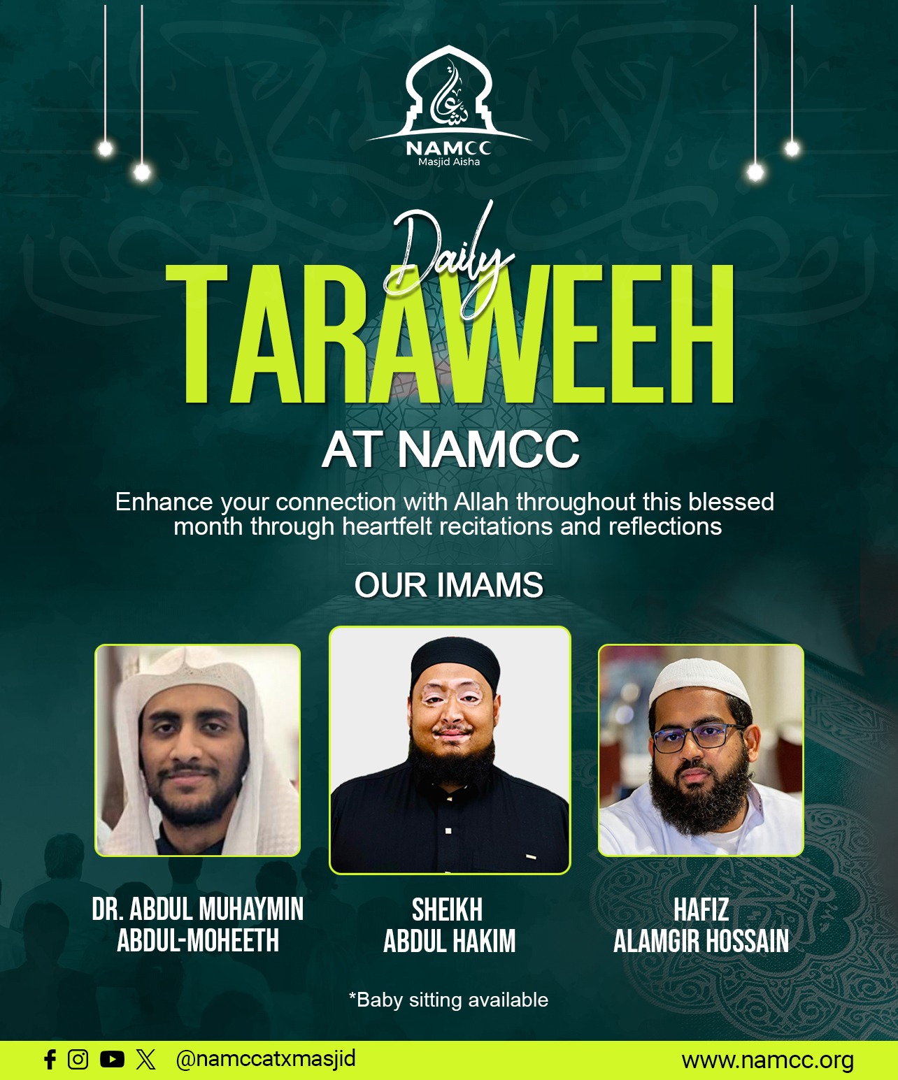 Itikaf arrangements will be made during the last ten days of Ramadan at NAMCC
